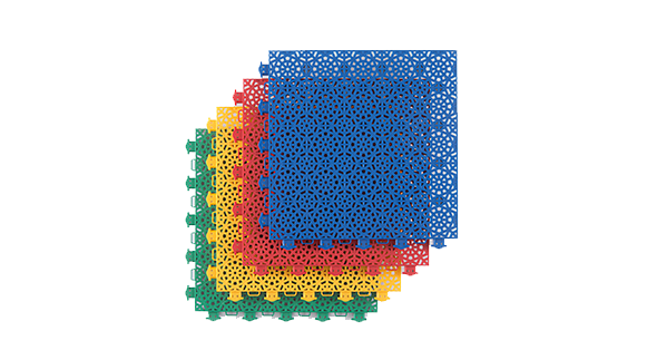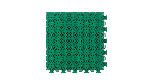 蜂巢弹垫悬浮式拼装地板采用食品级 PP(聚丙烯)原料 ,具有无毒无味、绿色环保等优点。加厚蜂巢 磨砂面层结构 ,满足专业反弹 , 360° 防滑。特有的加强形锁扣设计 ,连接牢固 ,拆卸便捷 ,能承受巨大的 纵向和横向的蹬踏力 ,不易脱落 ,不受室外恶劣天气影响 , 防止因热胀冷缩导致的起鼓开裂等情况。