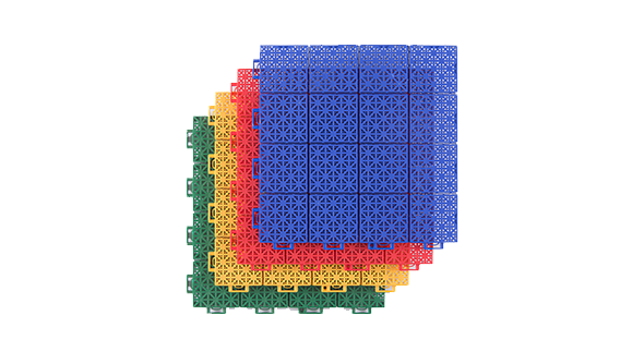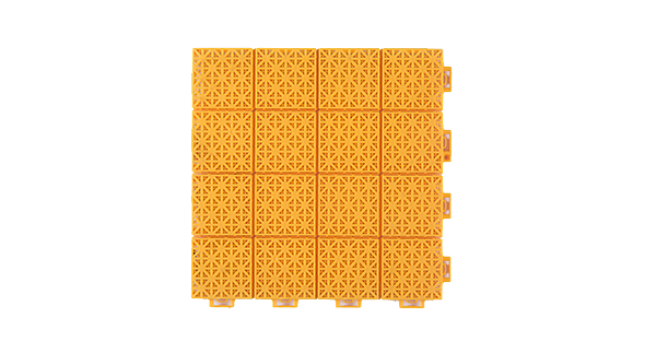 双米软连接悬浮式拼装地板 ,面层采用磨砂处理 ,保证防滑效果 ,雨天也能起到很好的防滑作用; 16 宫格软连接设计 ,保证伸缩性能 ,避免地板发生热胀冷缩起鼓现象